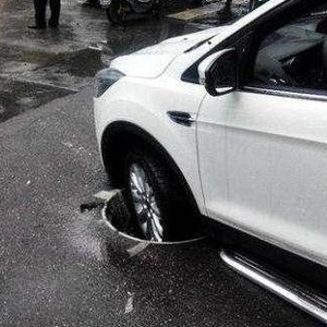 下水道井盖是在平常道路上常见的,一条路上可能有几十个井盖。但有些井盖被一些不法分子盗取了,留下一个赤裸裸的大坑。过往的车辆如果一时间没注意到压了过去,就会出现一个轮胎陷进去的情况,导致车头底部包围损坏。