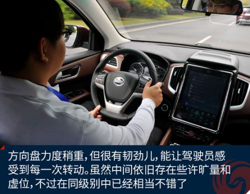 方向盘力度稍重,但很有韧劲儿,能让驾驶员感受到每一次转动。虽然中间依旧存在些许旷量和虚位,不过对于这个级别的SUV来说,已经相当不错了。不过可惜的是只支持上下两方向调节,对于腿长胳膊短的人来说,却是很难找到合适的坐姿。