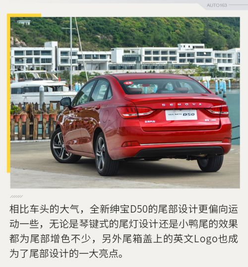 也许您会觉得这个“北”字的Logo太过老土了,我相信厂家一定也注意到了这个问题,但换标涉及方面太广,并不是一两天就能解决的,所幸的是全新绅宝D50在尾部的车标也被英文字母所取代,视觉感和档次感瞬间提升不少,这年头,搞点英文的确好使。