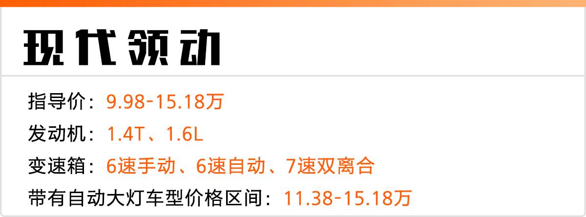 砖叔点评:现代领动是一款偏向于年轻活力的车型,车型颜值还是很不错的,除了两款最低配的车型之外,全都配备了日间行车灯,确实比较有范儿。动力配置方面和高尔夫类似,自然吸气发动机匹配传统自动变速箱,涡轮增压发动机匹配双离合变速箱。空间方面,纵向空间还是不错,但是头部空间有点局促。值得注意的是,带有自动大灯配置的是1.6L车型的中高配以及1.4T车型的全系。