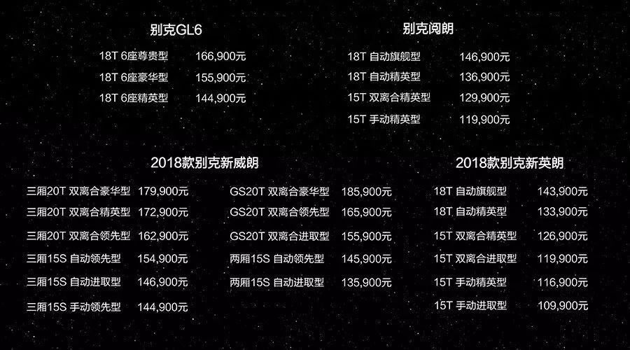 同GL6一同亮相的还有全新多功能旅行车别克阅朗、精品中级车2018款别克新英朗以及高端运动型中级车2018款别克新威朗三厢和威朗两厢/GS,由别克阅朗领衔的新一代别克中级车家族则带来21款车型,价格范围覆盖10.99-18.59万元。拉开了别克品牌深化家用车市场布局的大幕。