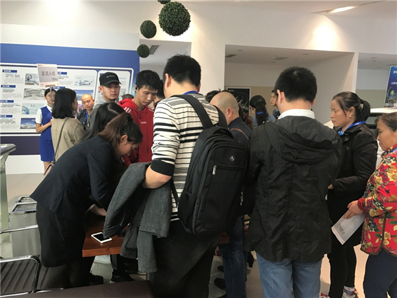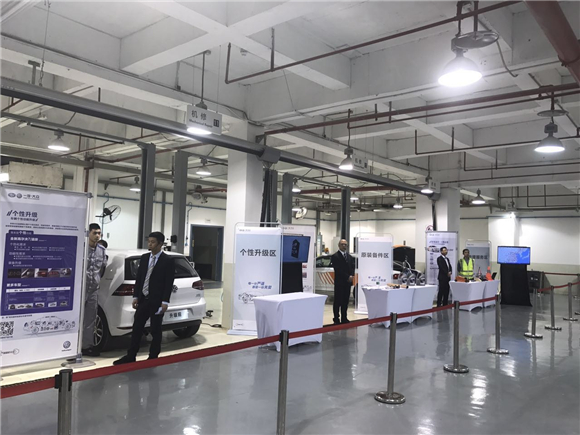 服务开放日活动仪式部分结束后,现场各位嘉宾进行一汽-大众的品牌升级体验环节,用户根据自己的分组,有秩序的体验售后品牌历史展示墙、快保服务、钣喷快修、原装备件、物有所值、救援服务、个性功能升级、精品附件、智能管家、整车产品体验区等10个体验环节。