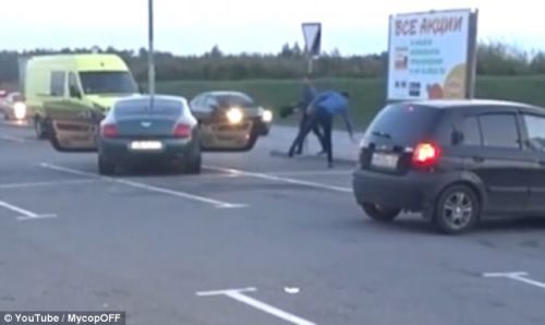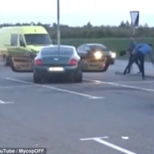 据英国《每日邮报》20号报道,在俄罗斯克拉斯诺戈尔斯克的一个停车场内,一位坐在宾利副驾驶座的男子在光天化日下,打开车门丢下一包垃圾,然后就关上车门离开。这一幕显然引起了在场的一位骑摩托车的人的不满。