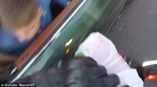 在紧随宾利跑了几分钟后,他终于在一个分岔口逮到了机会。趁着宾利停车等待之际,摩托车司机靠上来敲打着宾利车的车窗玻璃,示意里面的人摇下。宾利车内副驾上的男子起初还以为是汽车出了什么故障,就在他一脸茫然之际,摩托车司机迅速把垃圾袋从车窗扔了进去。