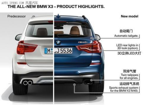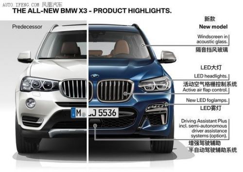 历经三代车型的沉淀和演变,基于宝马全新CLAR平台的全新X3,无论外部形态的年轻、时尚,还是内部空间的高档、舒适氛围,都是一次自我革新式的重大演化。