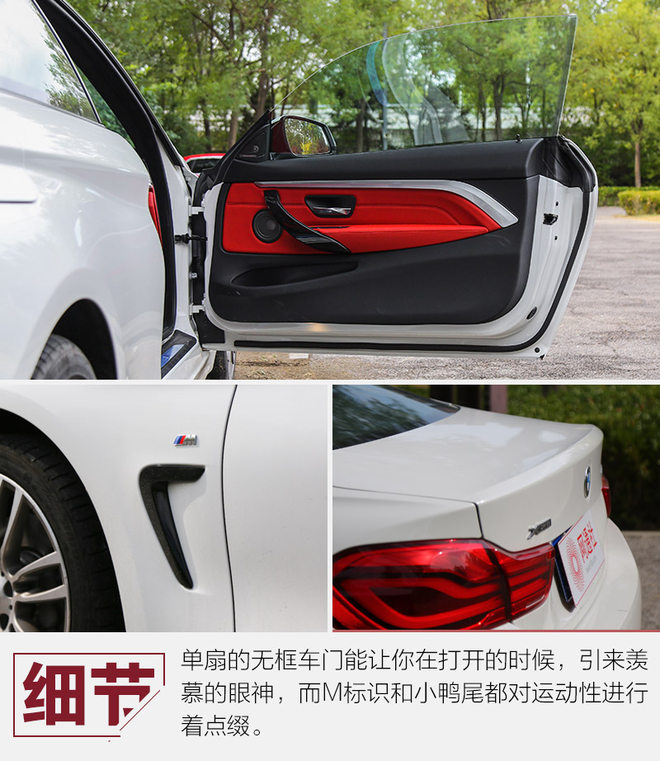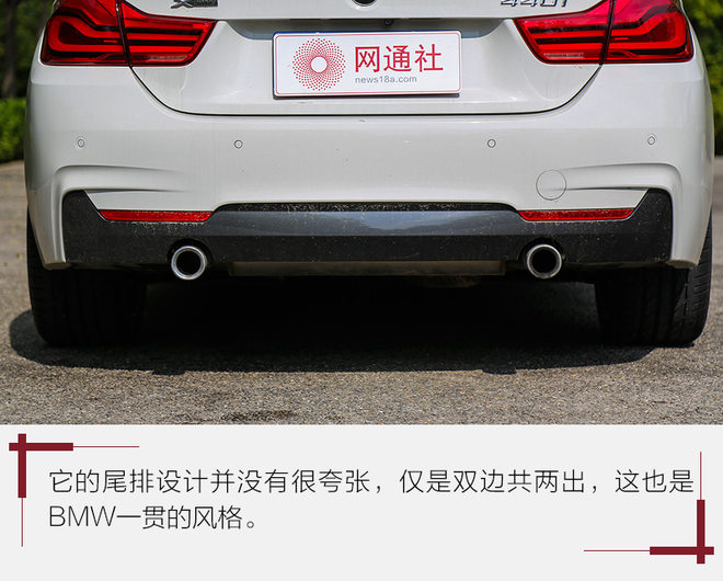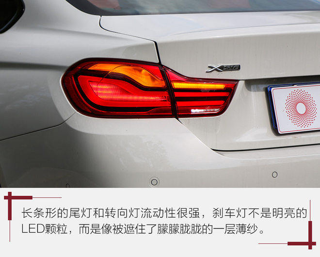 尾部同样干净整洁,但飘逸绚丽的尾灯,把整车气质提升到了应有的高度。LED光导纤维很明亮,色彩也极致细腻,而双边共两出的排气不显山不露水,但对于BMW来说,已经鲜明的表达出了它是轿跑定位。