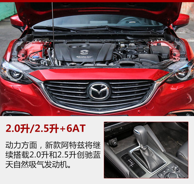 动力方面,新款阿特兹继续搭载2.0升和2.5升创驰蓝天自然吸气发动机。其中,2.0升发动机的最大功率为116千瓦,峰值扭矩为202牛米;2.5升发动机的最大功率为141千瓦,峰值扭矩为252牛米。传动系统方面,新车匹配6速手自一体变速箱。(图/文 网通社 裴健如)