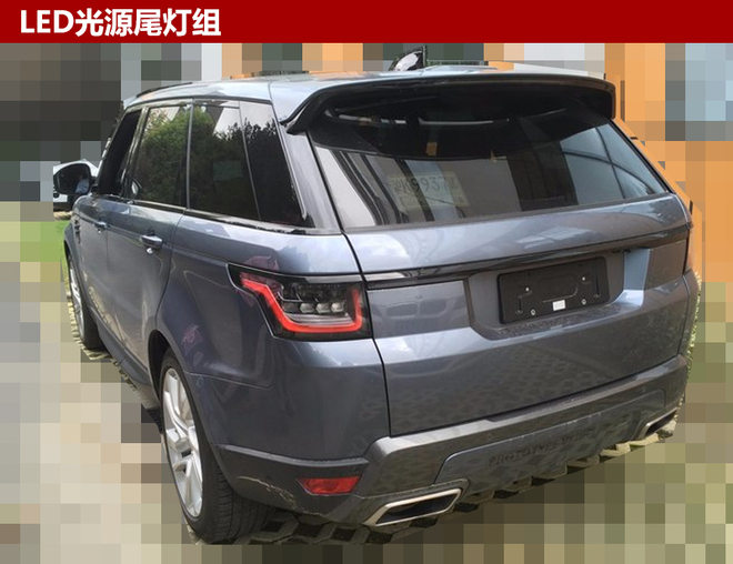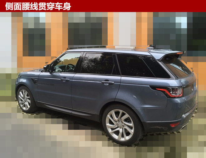 新款路虎揽胜运动版车身侧面较为简洁,腰线从车头延伸至尾灯,且A、B、C、D柱进行熏黑处理,与车窗下方黑色装饰条相融合。新车尾部大量运用横向线条,两侧LED光源尾灯之间由黑色饰条进行贯穿;车顶大尺寸扰流板配合高位刹车灯,点亮效果十分醒目。此外,新车后保险杠与底部护板采用不同材质设计,配合两侧矩形双边共两出排气,具有运动范儿。