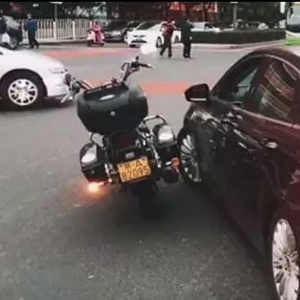 朋友圈被刷爆的视频~汽车嫌摩托车正常转弯挡道,随后从直行道左转超车别了摩托车。理论时,汽车司机从后备箱“翻家伙”,准备揍摩托车司机!