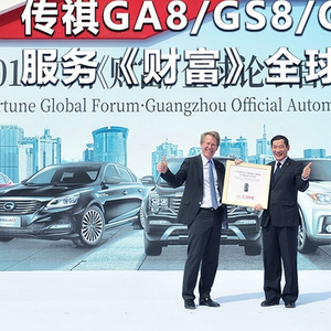 《财富》全球论坛被誉为“把握世界经济走向最清晰和最直接的窗口”,是全球精英论道国际商业与未来经济走向的高端盛会。在交车仪式上,《财富》全球论坛常务董事倪德慕(John Needham)表示:“广汽集团作为世界500强企业之一,代表着中国制造业的高端水准。我很荣幸广汽传祺成为本次论坛的官方唯一指定用车。”2017广州《财富》全球论坛执行委员会办公室主任朱小燚表示:”近年来,广汽集团自主品牌广汽传祺的产品品质和品牌美誉度实现了连年高速发展,是中国汽车工业高端制造的亮丽名片。”广汽集团副总经理张青松在致辞中表示:“近年来,在中国汽车市场整体增速放缓的背景下,(广汽集团)保持着持续的高速增长态势,连续5年入围世界500强,今年位居第238名。其中,自主品牌广汽传祺以稳定的高端品质表现深受市场认可,成为带动集团增量的主力军,广汽传祺利润贡献度居集团各投资企业之首,备受海内外业界与媒体的广泛赞誉。”