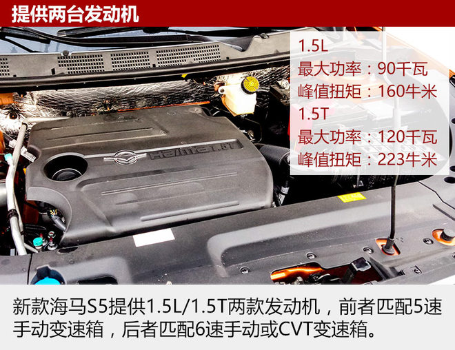 动力方面,新款海马S5提供1.5升自然吸气和1.5升涡轮增压发动机供消费者选择。前者最大功率为90千瓦,峰值扭矩为160牛米,匹配5速手动变速箱。后者最大功率达120千瓦,峰值扭矩达223牛米,匹配6速手动或CVT变速箱。(图/文 网通社 吴楠启)