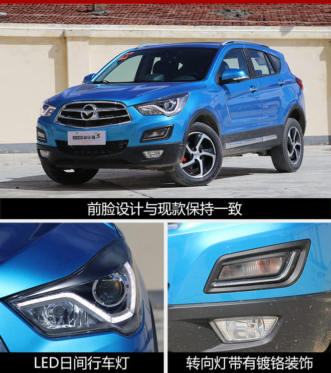 新款海马S5在外观设计上与现款车型基本保持一致,但在细节上做出了调整。虎鲨式进气格栅极具视觉冲击,两侧的泪眼大灯也颇有灵气,弯曲的LED光带则让前脸更加灵动。同时头灯还升级采用LED光源,照明效果更好的同时,也变得更加好看。