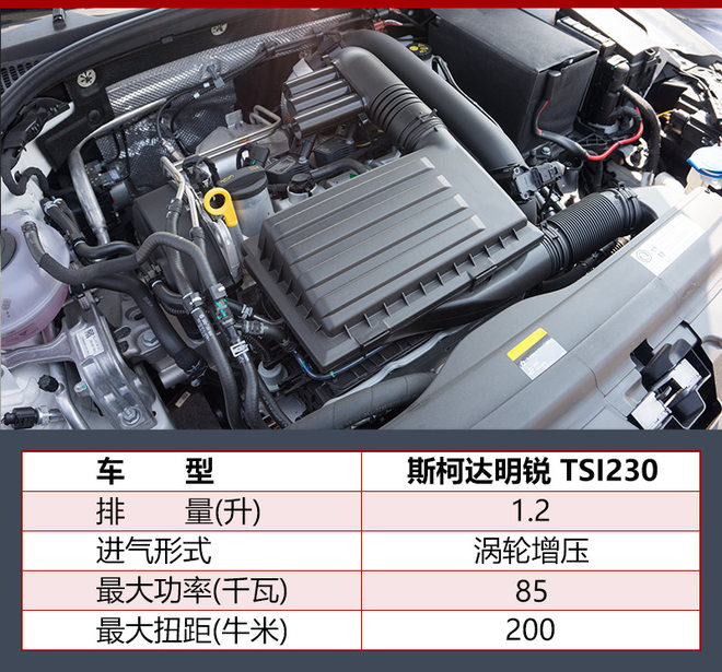 明锐采用了1.2T的涡轮增压发动机,最大功率为85千瓦,最大扭矩转速为5000转,最大扭矩为200牛·米,最大扭矩转速区间在2000-3500转。随着国家政策对燃油排放的日益严苛,小排量涡轮增压发动机已经成为了未来汽车发展的趋势,1.2升涡轮增压发动机的表现数据已经完全超过了1.6升自然吸气发动机的数据,而且在扭矩方面存在巨大的差距。