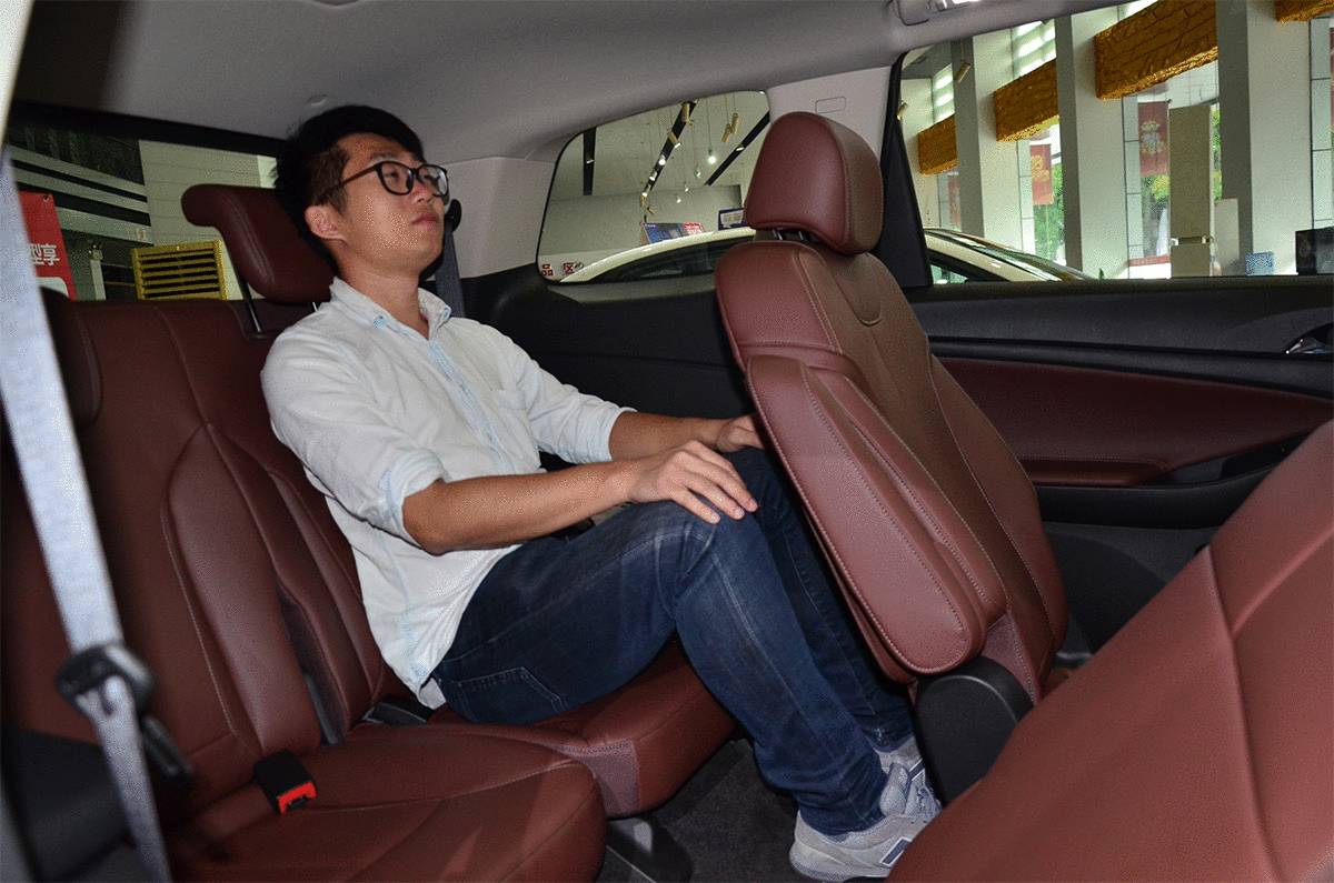 那么,第三排究竟好不好用?经过实测,当第二排处于最后位置时,身高170cm的模特坐在第三排,膝部与第二排靠背还剩一拳左右的距离,证明空间还是足够的。不过由于座垫比较低而且短,所以乘坐感比较一般,更适合身材较为矮小的乘客。