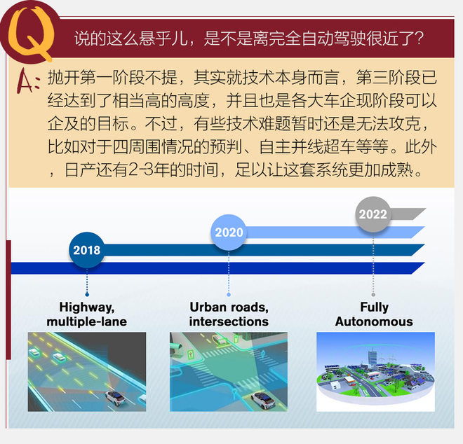 写在最后:如果单论技术,日产的这套自动驾驶谈不上多么领先,但成熟是它最重要的标签,这对于新技术而言尤为重要。要特别说明的是,日产绝不想让自动驾驶在现阶段就取代驾驶员,后者依旧在很长一段时间内对车辆有主导权,且要负主要责任。完全自动驾驶是目标,但显然不是目前最需要考虑的,日产人更清楚这个道理。