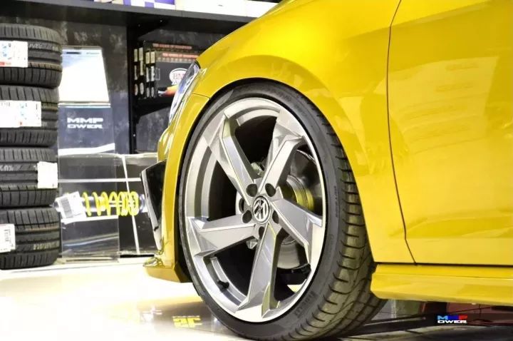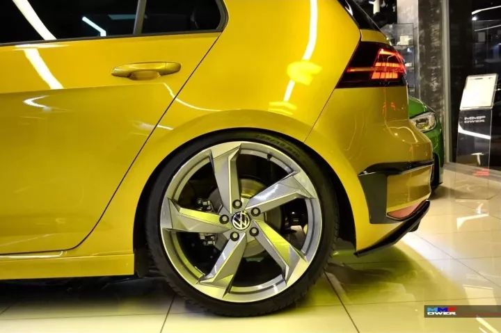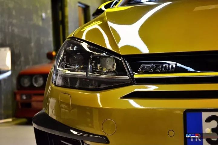 R400夸张霸气又有肌肉感的前保险杠,让这部车看起来“来者不善请让道”,如果是高R改的那就完全符合了刚刚那句话了。R400最有特色的就是贯穿中网跟两个大灯的柠檬黄的线条了,不过这部R高尔夫的大灯并没有改动。