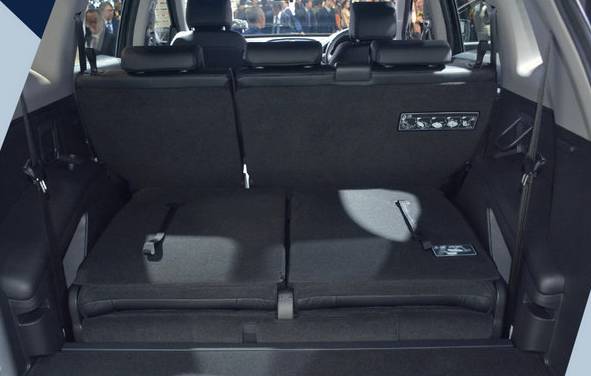 第二排座椅位置调整到最后(左上)和最前(大图)时,第三排的空间情况。