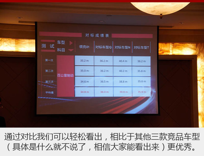 今天厂家还特意将领克01和竞品车型放到一起进行制动距离的比较,本以为领克01那34米的制动距离是个“假”成绩,可对比结果却令人大跌眼镜。