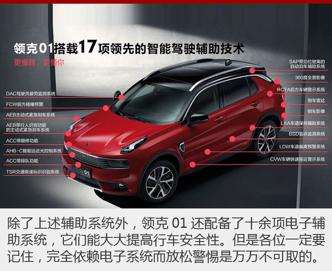 除了上面这些汽车结构上的亮点,领克01还在电子辅助系统方面有着过人的表现。