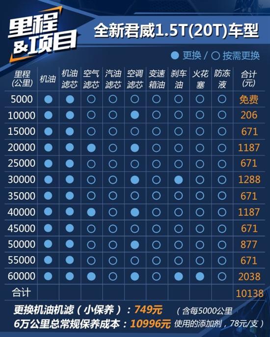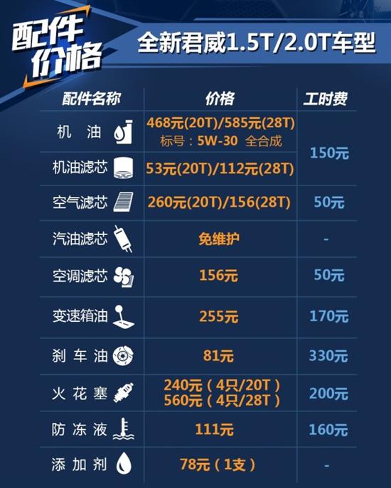 君威 (配置|询价)是中级车市场中的老牌选手了,在这一市场上征战多年的它如今引来了最新一代车型的换代。2017款全新别克君威具有了更为时尚的外观,同时也具备了更为漂亮的外观。由于这款车上市也有一段时间了,不少车主也将面临将它送进4S店进行保养的问题,这次我们就来看看这款车的日常养车成本情况究竟如何。为了方便阅读,搭载1.5T发动机的全新君威20T车型简称为君威1.5T,搭载2.0T发动机的全新君威简称为君威2.0T。