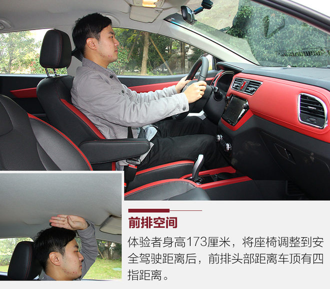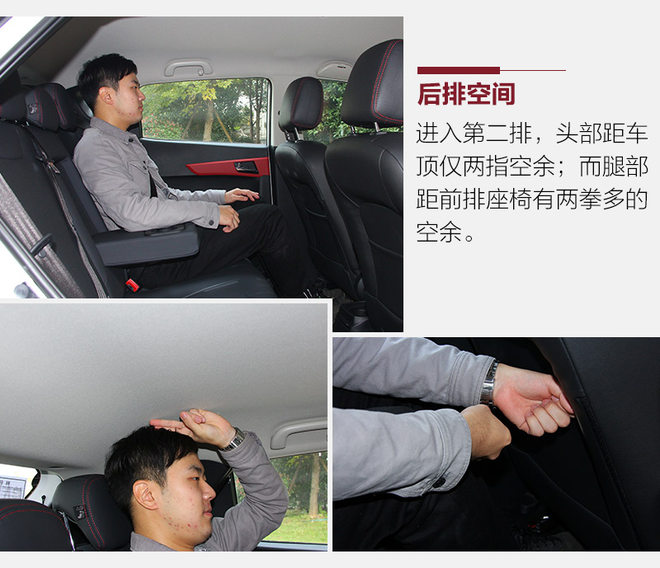 对于一辆小型SUV来说,江淮iEV7S表现的还算可以。体验者身高173厘米,座椅调整至安全驾驶距离,头部还有不错的多余空间。并且在驾驶座椅右侧还装有扶手,可谓是一个贴心的设计。而进入新车后排,在头部空间上就略显紧凑,只有两指空余。而腿部空间表现不错,有两拳左右的空间。