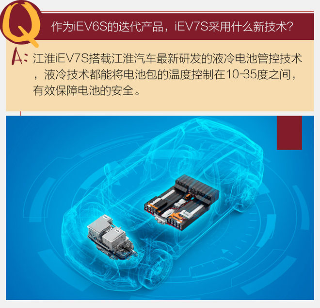 iEV7S是江淮新能源十年七代的代表作,其本身采用了许多新技术,并且在最关键的电池技术上进行提升。iEV7S基于高比能18650电芯的高效安全液冷电池系统,9类电池液冷热管理部件,以及5类电池失效一致性结构设计,有效保障电池的安全,充分保障电池使用寿命。