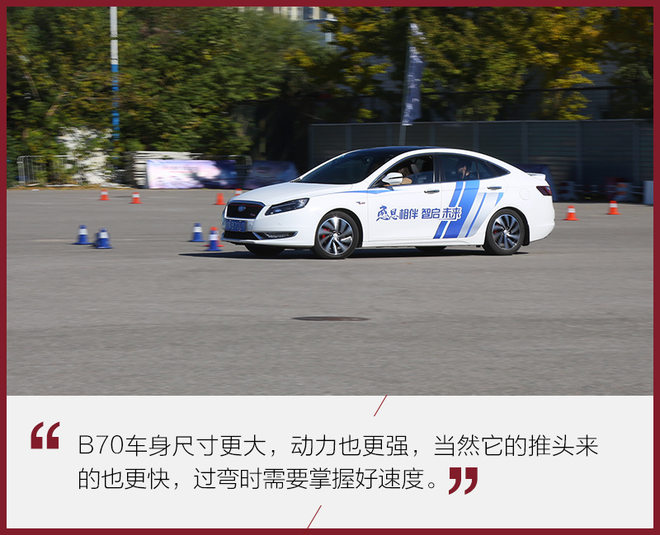 B70实际动力上其实要比B30 EV要强上不少,但也是受限于场地其动力优势并没有发挥出来。不过尺寸更大的它、动力更强的它在过弯时候更容易推头,此时你就要更加小心的控制车速以及入弯的走线。但不要以为它有多运动,实际驾驶过程中,你可能用不到这些东西,够用就足以解释它。