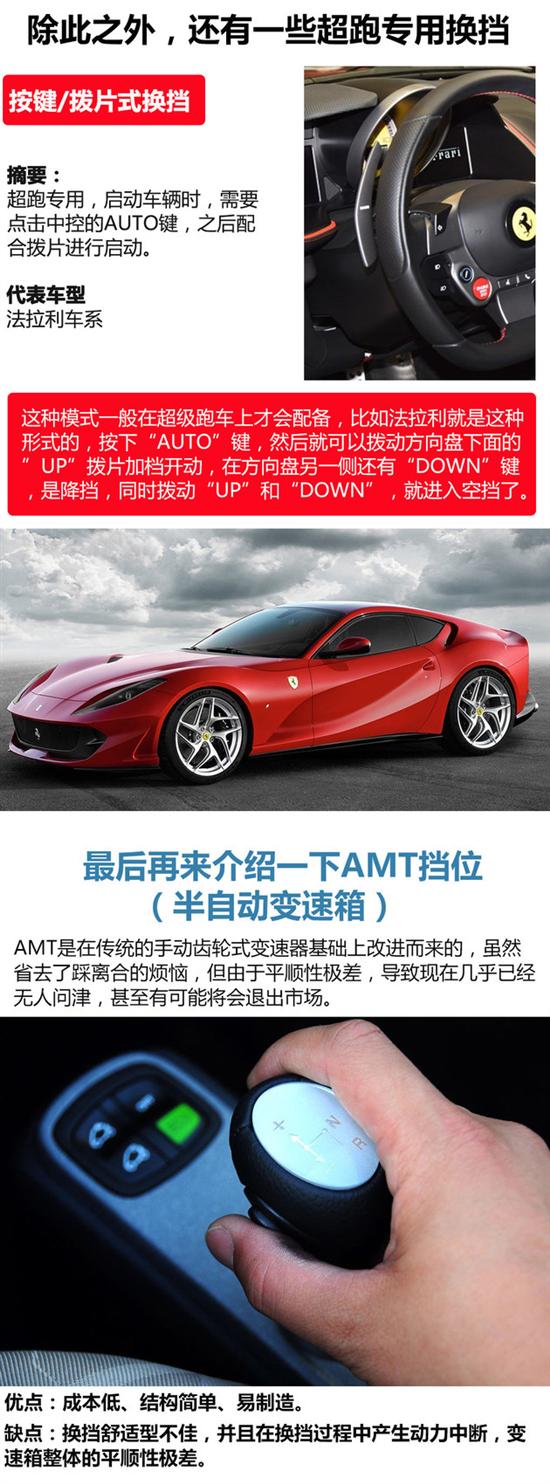 总结:以上便是市面上较为常见的挡位样式,以及挂挡方式,相信看过之后,你可以对它们有了一个初步的了解。虽然不敢说,每个人都会开上如法拉利这样的超跑,但如果有机会体验,最起码可以知道到底如何挂挡,避免出现尴尬的局面。