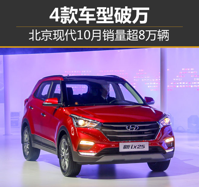 北京现代继今年6至9月取得连续4个月正增长的成绩后,企业在10月份销量再次突破8万辆,4款主力车型10月销量均超过1万辆。其中,全新途胜10月销量为14,718辆;领动月销量14,099辆;新名图月销量达12,873辆;朗动为10,867辆;全新小型车悦纳也有着9,450辆的月销量。