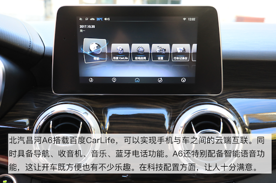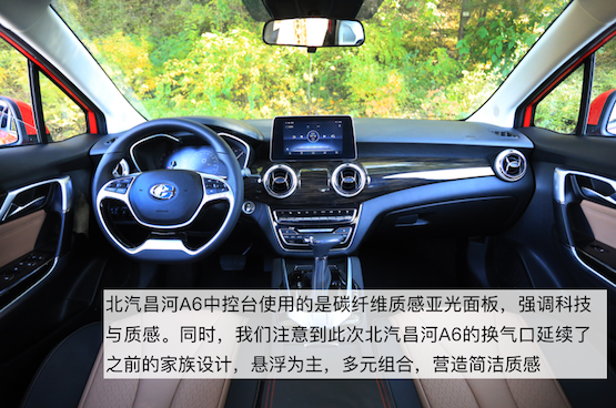 此次试驾的车辆,内饰采用黑咖设计。此外北汽昌河A6还配备黑橙、黑红两种内饰配色,双色搭配更显时尚感。功能方面,中控以悬浮设计为主,方便驾驶员操作,更提升了驾驶的安全性。