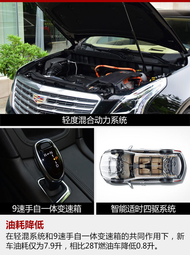与之相配合的最新9速手自一体变速箱针对都会路况实际需求进行标定,在时速90公里以内即可实现9挡切换,整体齿比分布较为合理,提升日常驾驶时升/降挡的平顺性。在智能轻度混合动力系统与最新9速手自一体变速箱的共同作用下,XT5 28E四驱技术型百公里油耗仅为7.9升,相比现款XT5 28T汽油车的8.7升百公里综合油耗,“省油”效果比较明显。