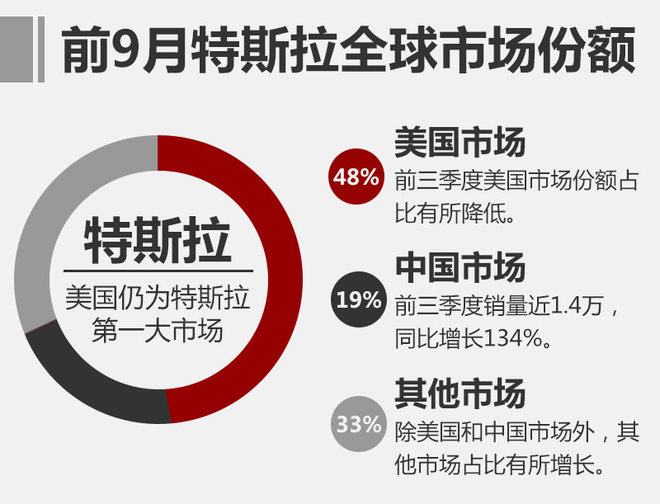 中国市场销量近1.4万辆,占全球市场的19%,相比2015年的7%增长12个百分点,相比2016年同期的14%增长5个百分点。其中Model X为60%,Model S为40%。