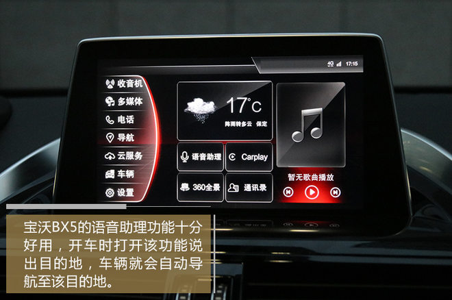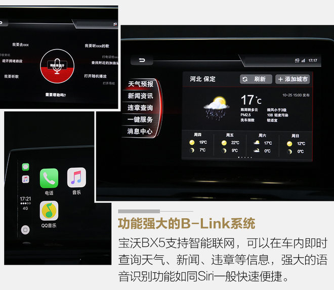 作为一个偏感性的人,我其实一直对电子科技类的东西不大感兴趣,有的时候一些电子产品的界面设计就能把我弄得晕头转向。宝沃BX5上搭载的B-Link系统就完全避免了这些问题,它支持语音操作,这样一来我也就不用在复杂的屏幕界面上来回操作了,不仅如此,语音控制还让我可以在驾驶车辆的同时对车辆的一些功能进行控制,更加便捷安全。