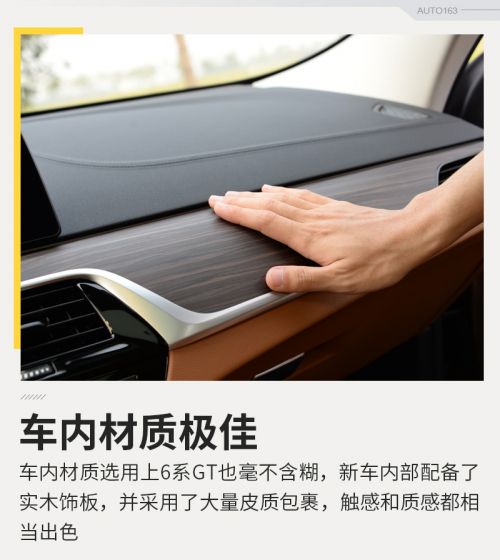 车内延续了家族式内饰设计风格,无论是中控台造型、中央触控屏、可编程全电子仪表盘,都会有种让你置身于现款5系车内的感觉。此外,车内材质选用上6系GT也毫不含糊,配备了实木饰板,并采用了大量皮质包裹,触感和质感都相当出色。