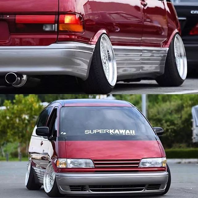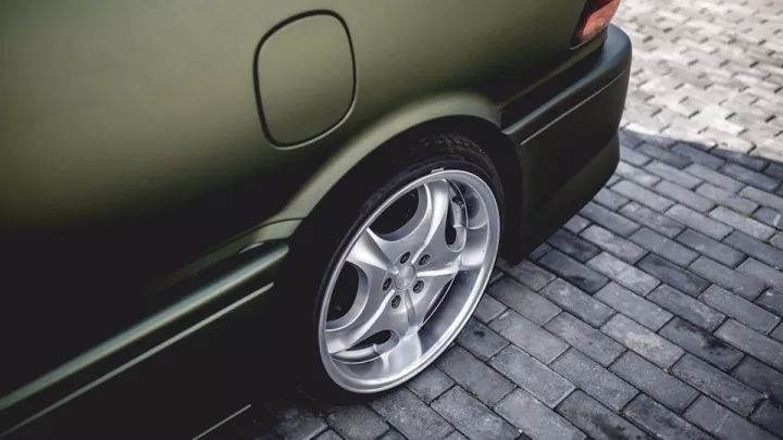 接下来进入眼球的这辆大霸王在外观上基本沿用原装的外观,不过换上了无标中网,看起来更斯文,后期还喷上了更好看的酒红色车漆。此外,车主利用绞牙避震将车身降低到藏轮的高度,同时换了一套经典的电镀BBS轮毂,并且调整了不小的负外倾角,做成了很棒的Hellaflush姿态。