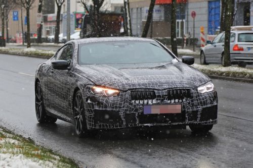 从最新谍照来看,全新8系的前脸设计与概念车有一定的差异,概念车俯冲式的车头线条和前保险杠处夸张的空气动力学设计在量产版本上有所收敛,但由于加装了M套件,三段式的下唇特点得以保留。全新8系量产版前大灯组尺寸及中网双肾格栅更大.