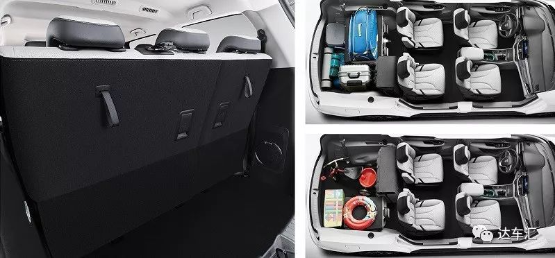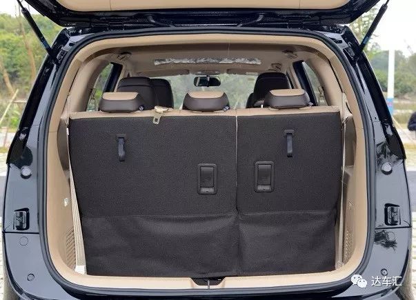 特别是第二排配置了两个独立的VIP座椅,并且前后位置可调节,更加方便第三排乘客的上下车以及空间调整,第三排也可以轻松坐下两位成人。没有放倒第三排座椅的时候后备箱的容积还是比较小的,大概就是放下两个24寸登机箱的样子,还得立着放。