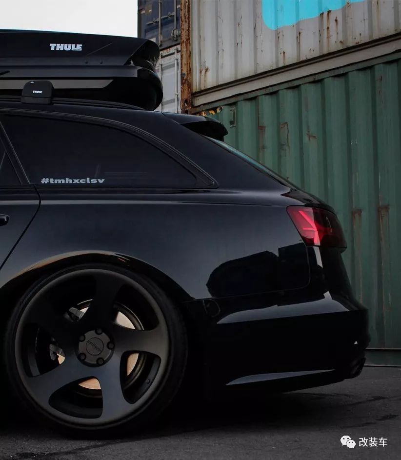 轮毂用的是Rotiform的TMB,简单的造型营造出简约的风格,同样轮毂也选择了黑色,整车就是从头黑到脚,气场相当强大。同时修长的车身加上旅行车的身段让这辆A6 Avant越看越迷人。