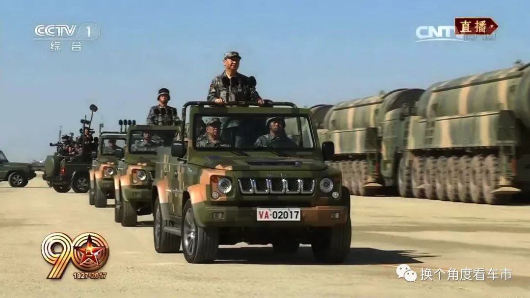 2017年7月31日,党政军最高领导人搭乘BJ80敞篷指挥车,在人民解放军建军90周年之际检阅三军仪仗队。