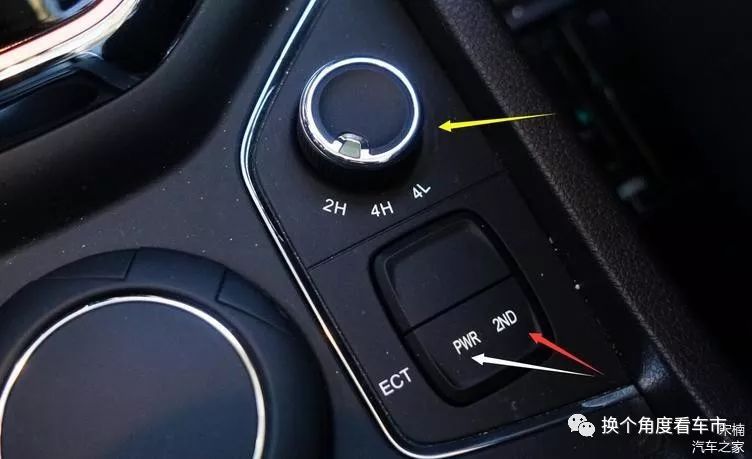 如上图所示,搭载2.3T汽油发动机的BJ80民用版分动器电子换挡旋钮,设定了2H\4H\4L挡。