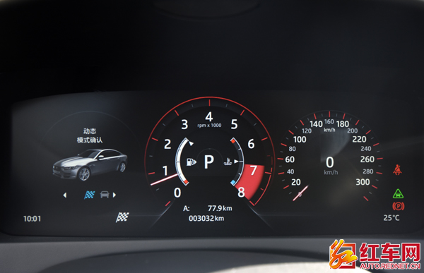 按下换挡旋钮后方的按键切换驾驶模式,仪表变红,激情即将来袭。