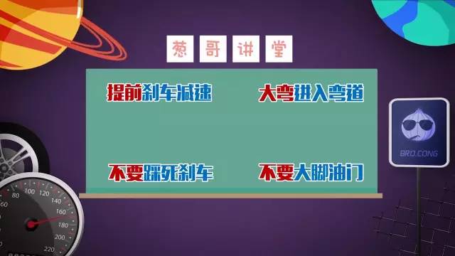 弯道这个是很恐怖的,如何处理呢?应该提前刹车减速,拐大弯进入弯道,并且弯道中不要踩死刹车,也不要大脚油门。