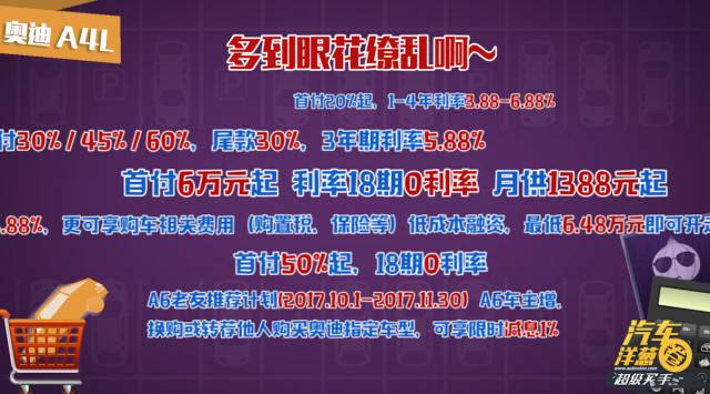而且现在奥迪官方还有多种灵活的金融政策,低首付还是低月供就看您的实际情况了。