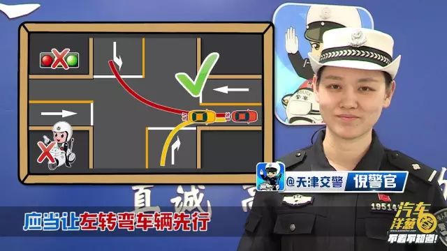 如果撞上了,谁的责任呢?我们要如何避让呢?再一起请出美丽的天津交警姐姐登场。