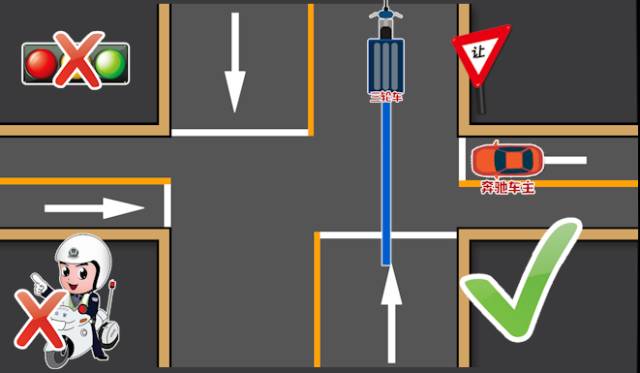 说完交警回过头问奔驰车主:你没有看到路口的让行标志吗?