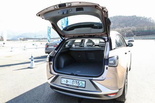 FCEV上非常重要的储气罐也有看点,NEXO首次设计成三槽一体化的氢储存系统,通过最优化的排布,获得了与同级内燃机SUV水平相当的空间,我们从后排乘坐体验和行李箱表现便可验证。