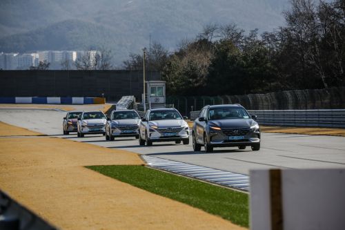 哦对了,在赛道编队行驶中,前车排气会时常喷出一些水出来,这验证了NEXO对环境是十分友好的。