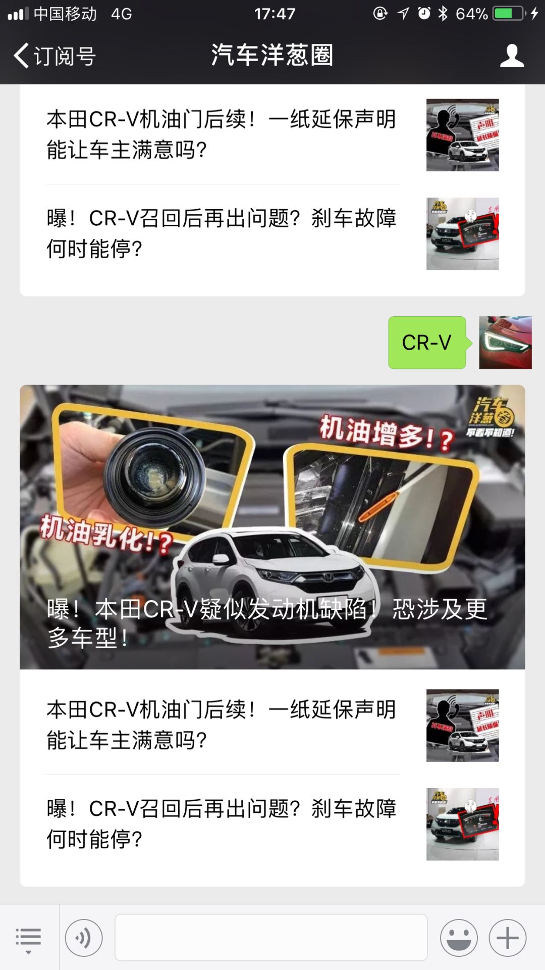 想了解详细情况的小伙伴儿,可以关注我们的微信,回复“CR-V”就能看到啦!