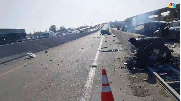 出事的特斯拉首先撞向中间的隔离栏,随后撞向了最左边的第二个车道,后来被在该车道的马自达撞上,一辆在最左侧车道行驶的奥迪也发生了碰撞,一共三辆汽车涉事其中。加利福尼亚公路巡警关闭了 101 号高速公路南行的四条车道,两条车道后来重新开放。