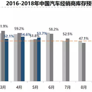 据中国汽车流通协会发布的“中国汽车经销商库存预警指数调查”VIA(Vehicle Inventory Alert Index)显示, 2018年5月汽车经销商库存预警指数为53.7%,环比下降0.9个百分点。